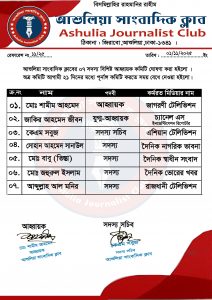 আশুলিয়া সাংবাদিক ক্লাবের ৭ সদস্যের আহ্বায়ক কমিটি গঠিত।