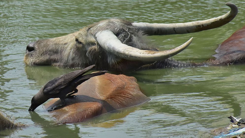 তীব্র গরমে অতীষ্ঠ জনজীবন প্রাণিকুলেও নেই স্বস্তি গরম থেকে বাঁচতে কর্ণফুলী নদীতে ডুবে আছে মহিষ।